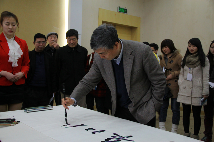 新闻中心讯(记者  万风)23日下午,华中科技大学校长李培根院士为我校500多名师生代表带来一场精彩的学术盛宴,令在场师生受益匪浅。讲座结束后,在省教育厅副巡视员刘怀俊、我校校领导的陪同以及师生们的簇拥下,李培根院士来到接待室,现场挥毫泼墨,豪情书写“长江后浪”四个遒劲的大字,表达了对学校的殷切希望。在场师生颇受鼓舞,纷纷表示要拼博进取、奋发向上,不辜负李院士的期望。