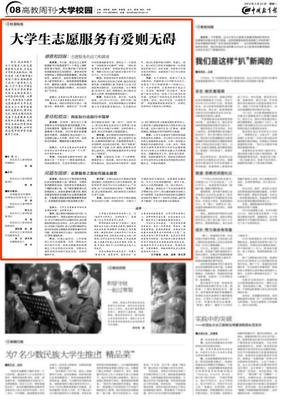 吴艳:高校应该对大学生开展志愿服务活动进行正确、有效的指导。不能为了开展活动而开展活动,而是要将志愿活动,作为人才培养的硬指标,固化下来,成为人才培养的重要一环,使之常态化。