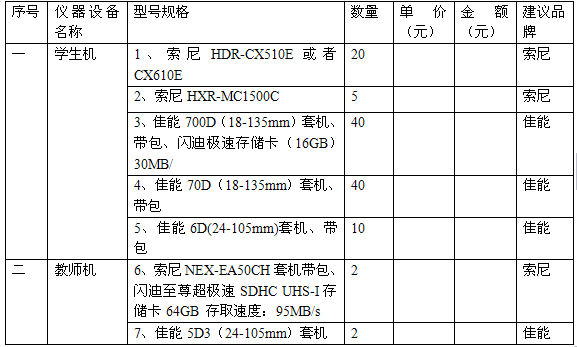 为满足实验中心的改造的需要,现在就实验中心相机及摄像机采购项目进行招标,具体清单如下: (以下报价都是包含运费,税费,人工费等相关费用)