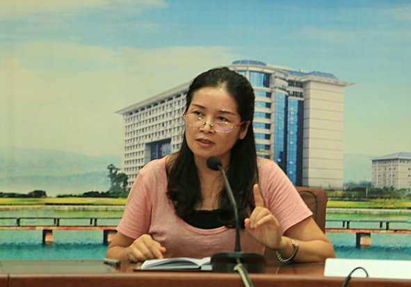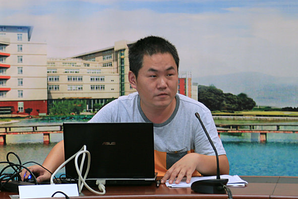 图为保卫科曾波科长在会上作报告 摄影:罗袁璐