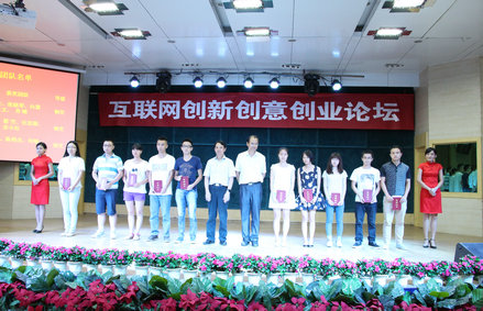 图为张金隆校长为获奖学子颁发证书 摄影:李杨 在2014年全国大学生电子商务“三创”大赛中荣获特等奖的团队小组组长刘晗作为获奖代表发言。他说,团队获奖并非偶然,凝聚了学院老师们的心血和全体队员们的努力,更离不开学校给予的大力支持。学院一直高度重视培养学生的创新意识、创意思维和创业精神,以项目的方式推动学生参与创业,此次获奖充分证明了学院学生们的专业能力和综合素质。今后,团队成员将继续努力,在学好专业知识的同时,积极参与项目实践,争取在今后的比赛中再获佳绩。 在专题讲座中,张金隆以大量的案例、数据阐述了互联网时代给世界带来的颠覆性的改变,包括生活、生产、服务、商务、管理、学习、交流等方式,“互联网对人们的影响是全方位的,‘重构’是不容质疑的,甚至是颠覆性的变化”。