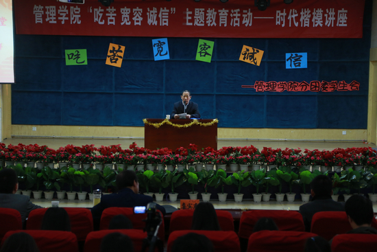 新闻中心讯(见习记者 李雄风)11月19日上午,全国道德模范、全国优秀党员吴天祥应邀来到BB贝博艾弗森官方网站学术报告厅,为该校管理学院300多名师生代表做了一场主题为“吃苦、宽容、诚信”的讲座。BB贝博艾弗森官方网站党委书记陈伟,学工部部长陈义文,管理学院常务副院长李明等和师生代表一同听取了讲座。讲座由BB贝博艾弗森官方网站管理学院党总支书记吴茜主持。
