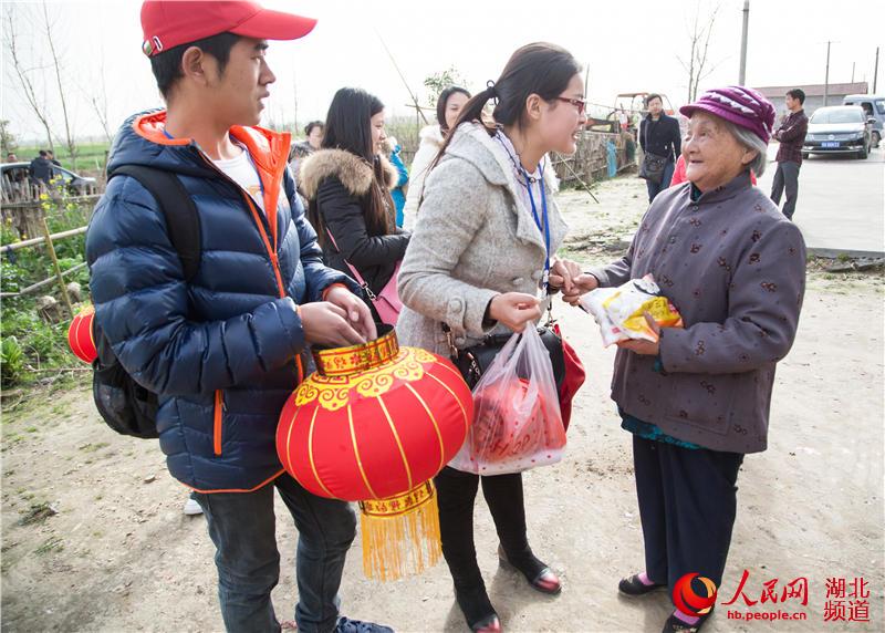 图为大学生现场送灯笼、窗花 摄影:李鳌