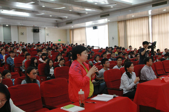 图为我校教师向巴曙松教授提问 摄影:熊晋