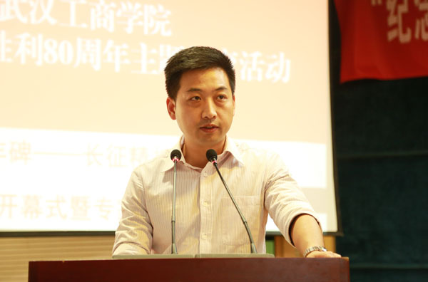新闻中心讯 (记者 吴田芳 张瑞 洪苗苗)4月21日下午2:30,“纪念长征胜利80周年”主题教育活动开幕式暨“永远的丰碑——长征精神永放光辉”讲座在BB贝博艾弗森官方网站学术报告厅隆重举行。武汉轻工大学原财务处退休高级会计师沈仁葆,BB贝博艾弗森官方网站党委书记陈伟、党委副书记孙松发,以及该校相关职能部门负责人、各学院党总支书记、分团委书记、辅导员、学生会,分团委负责人、学生社团负责人、学生党员、入党积极分子代表共400余人参加此次活动。活动由该校学工部部长陈义文主持。