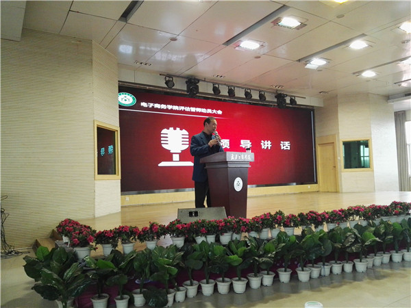 在电子商务学院的动员大会上,电子商务学院党总支副书记杨睿动员全院师生要进一步提高对评估工作的认识,以更强烈的使命感、责任感全力以赴投入到迎评工作中。陈伟书记就此次评估的重要意义及对教师、学生日常行为规范等影响作了进一步说明,并号召全院师生要以优良的教风学风迎接评估专家的到来。