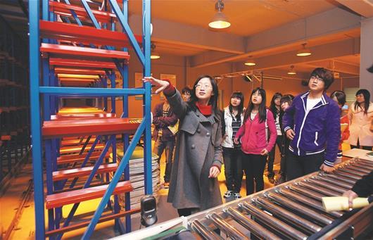 图为学生在高仿真的物流实验室里实训