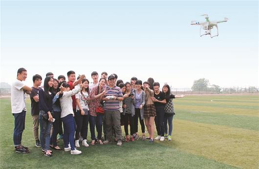 图为老师利用无人机进行课堂教学