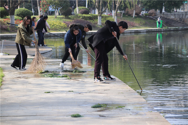 历经三个多小时的劳动,静思湖最终焕然一新。2017级生物制药本2班的学生陈双凤在活动结束后说道:“虽然一下午坚持下来真的很累,但是看到静思湖在自己的双手下变得更加漂亮,就觉得一切都是值得的!我为自己感到自豪!”