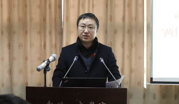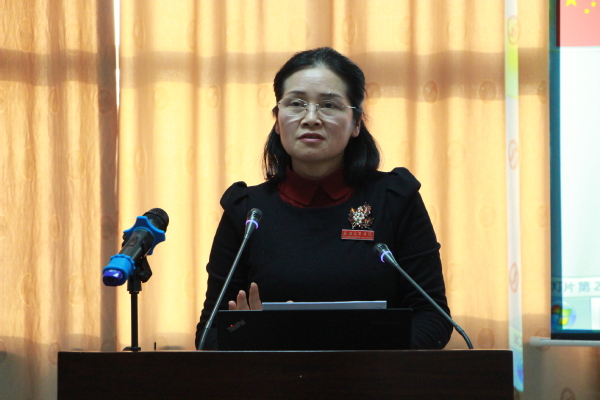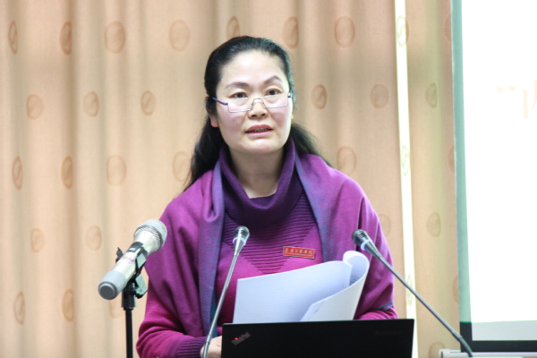 图为校工会常务副主席苏红作报告 摄影:孙欢欢