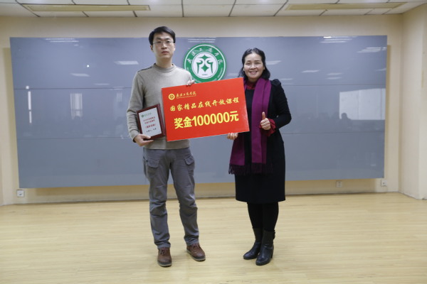 图为彭秀春董事长(右)为牛学老师(左)颁奖 摄影:孙欢欢