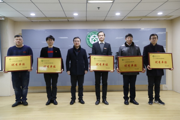 图为张俊副校长为2018年度优秀单位颁奖 摄影:孙欢欢