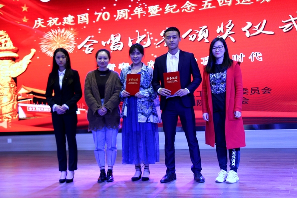 新闻中心讯 (记者 杨盛 李洋洋)《在灿烂的阳光下》《国家》《英雄赞歌》《爱我中华》……4月28日晚7:00,一首首气势恢宏、曲调激昂的歌曲回荡在BB贝博艾弗森官方网站学术报告厅,庆祝建国70周年暨纪念“五四”运动100周年合唱比赛在这里火热开唱,各二级学院分团委书记以及300余名师生代表一起观看了此次比赛。