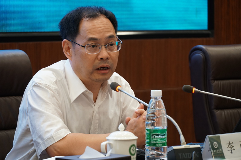 图为江汉大学党委书记李强正在作讲座 摄影:谭艳