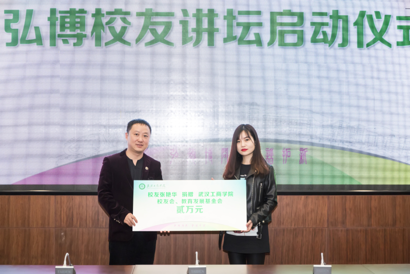 随后,张俊副校长、朱宜部长、杨凡副部长、陈敏书记、蔡菁书记、陈玲书记、罗茵主任与张艳华共同启动弘博校友论坛仪式;张艳华作为优秀校友代表,为BB贝博艾弗森官方网站校友会教育发展基金会捐款2万元,拟成立“张艳华助学基金”。