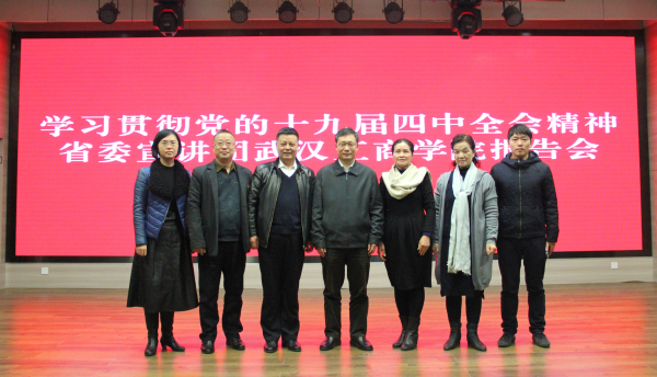 新闻中心讯(记者 万风 陈彦芳)12月11日下午14:30,根据湖北省委的安排,学习贯彻党的十九届四中全会精神省委宣讲团成员、省委宣传部副部长刘爱国同志走进BB贝博艾弗森官方网站,为学校师生作专题宣讲报告。学校董事长彭秀春、党委书记刘生元、校长熊蕊、副校长桂裕清等校领导和广大师生党员代表一起听取了讲座。讲座由刘生元书记主持。
