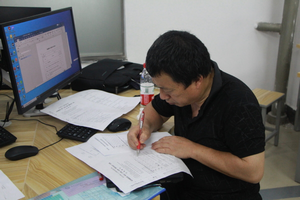 图为裁判正在阅卷 摄影:韩济泽