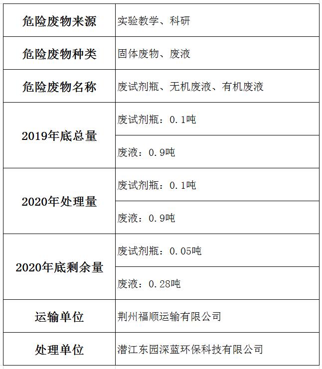 2020年BB贝博艾弗森官方网站实验室危险废物信息公示