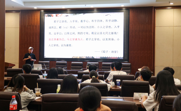 新闻中心讯(记者 蓝静 芮雨欣)“希望同学们在这里能学有所获,学有所成,做到与圣贤为友,与经典同行”,8月31日上午,青年学者、国学讲师、传统文化推广者、湖北省国学研究会副秘书长、BB贝博艾弗森官方网站国学教育研究院兼职教师张凤篪与第八届国学夏令营的学员们分享国学经典中的做人道理和处事哲学。