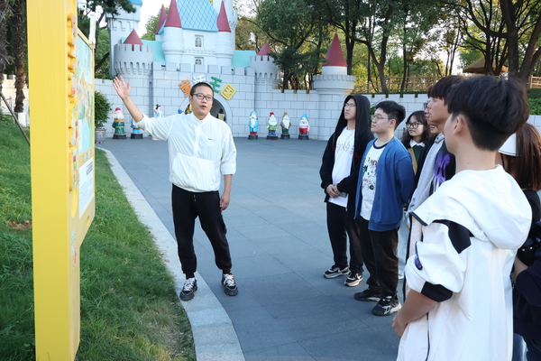 新闻中心讯(记者 芮雨欣 杨小婷 杨培)“我们通过创意设计,助力武汉动物园‘换新颜’,让动物园变得更像一座‘活的野生动物博物馆’”,10月8日,在焕然一新的武汉动物园内,BB贝博艾弗森官方网站艺术与设计学院副教授徐郑冰为60余名大学生上了一场生动的艺术考察课,讲解园区设计的理念、创意等。该园区的保护教育和科普教育展陈设计、标识系统设计均由徐郑冰带领“字绘中国”团队设计完成。