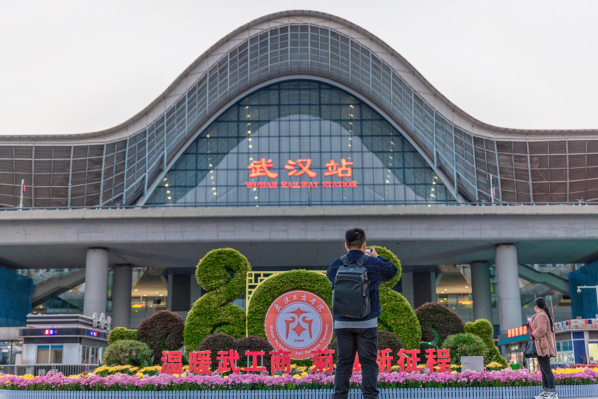 图为武汉站现场学校金秋菊展展位 摄影:李若源