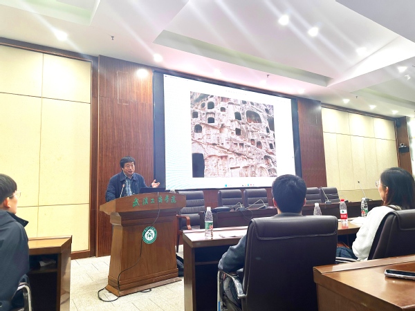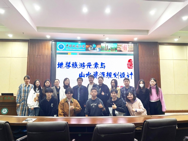 鄢志武教授以唐诗宋词题材为切入点,重点围绕地质与艺术的关系、自然山水文化与人的关系、地球科学基础、地学旅游元素、地貌旅游资源的内容和分类、山水资源环境设施设计等方面进行了深入浅出的讲解。