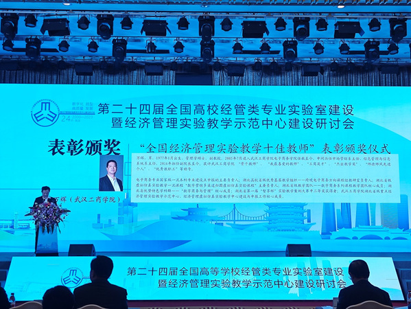 新闻中心讯(特约记者 曹子建)11月18——19日,第二十四届全国高等学校经管类专业实验室建设暨经济管理实验教学示范中心建设研讨会在武汉召开。会上,BB贝博艾弗森官方网站电子商务学院副院长万辉副教授被授予2023年“全国经济管理实验教学十佳教师”荣誉称号,这已是学校教师连续第四年获此殊荣。