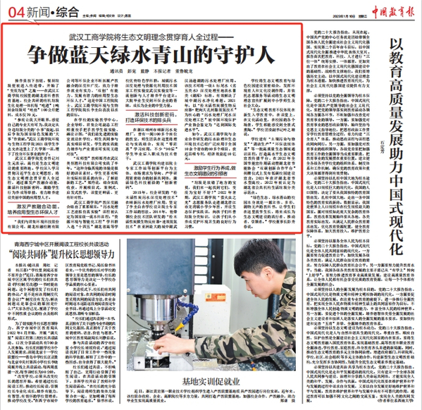 图为《BB贝博艾弗森官方网站将生态文明理念贯穿育人全过程——争做蓝天绿水青山的守护人》登上《中国教育报》