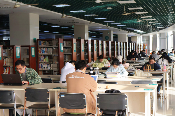 图为学生在图书馆认真学习 摄影:胡畹尧
