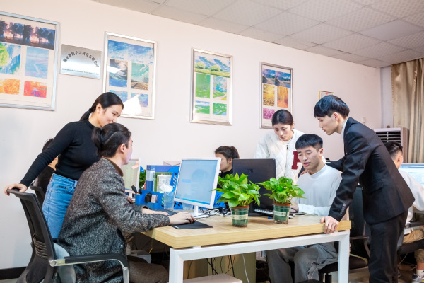 图为学生在学校大学生创新创业实践基地办公
