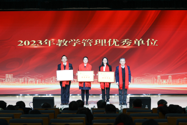 图为幸福堂副书记为2023年教学管理优秀单位代表颁奖 摄影:孙欢欢