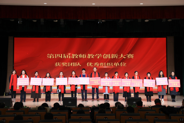 图为亓小林校助为第四届教师教学创新大赛获奖团队和优秀组织单位代表颁奖 摄影:芮雨欣