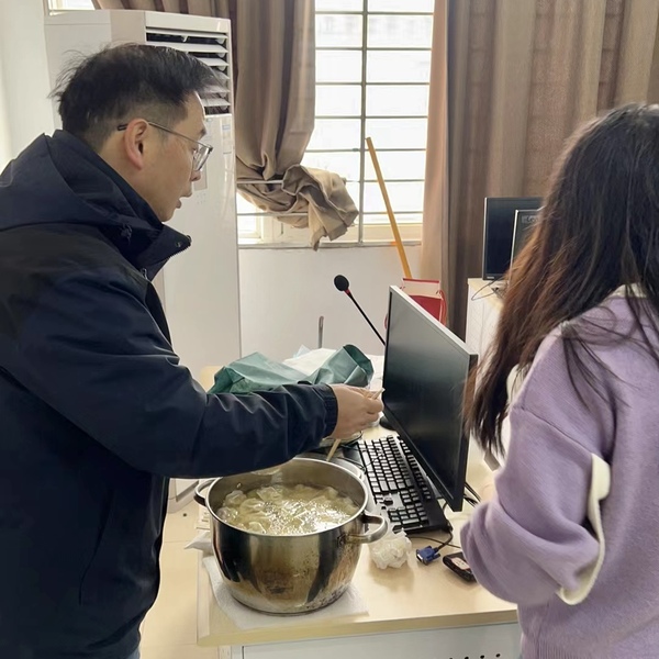 2月5日当天,金学武院长一行详细了解了同学们的生活情况和留校需求,叮嘱同学们注意防寒保暖,注意安全问题,特别是宿舍用电安全与外出人身安全,常和家人、老师、同学联系,出现问题及时和辅导员老师沟通,并表示学院将切实解决同学们的实际困难,让大家在学校住得安心、舒心、开心。
