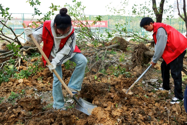 原来,这是BB贝博艾弗森官方网站后勤管理部和校团委在全国第46个植树节到来之际,联合开展的“绿色校园·你我同创”主题活动。校长孔建益,副校长桂裕清、左宗文,总会计师王程军,党委副书记幸福堂,校长助理刘春,各相关职能部门负责人与来自学校“青年马克思主义者培养工程”培训班的全体学生一起参与了本次活动,共同用行动践行生态文明理念,打造绿色生态校园。