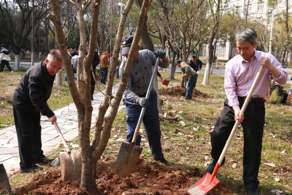 图为教职工参加植树活动 摄影:陈晓丹