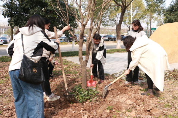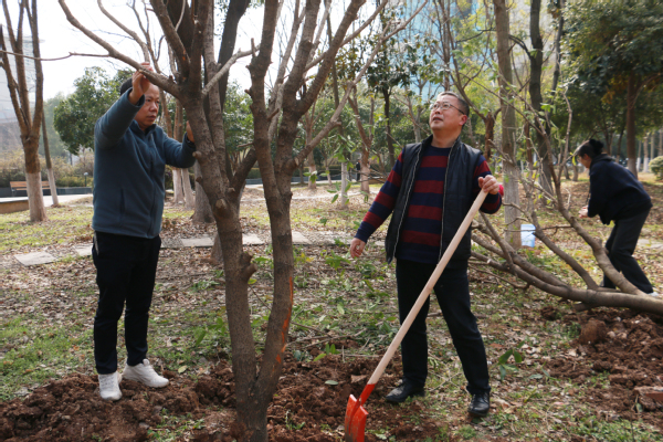 新闻中心讯(记者 杨培 杨小婷 涂媛媛)“树根周围不能堆太多土,要注意松土,这样方便后期浇水。”3月12日下午,在BB贝博艾弗森官方网站实验教学中心附近的一片绿化林里,学校校长孔建益手握铁锹,一边给新种的树木培土,一边和老师们交流着种树的细节。