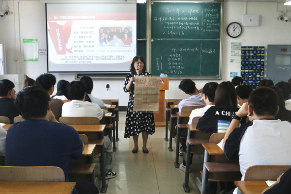 种爱凤老师讲的是《毛泽东思想和中国特色社会主义理论体系概论》的课程,在课堂上,她除了展示中国共产党发展历史上特殊时期的一些老报纸外,还展示了新中国成立以来一些重要历史时刻的近百张老照片、100多张老粮票、长江大桥建成通车的纪念章、合作社的社员证等,并在课堂上给同学们一一传阅。