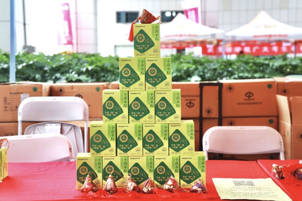 图为高招会现场准备的粽子和香囊 摄影:胡毅 芮雨欣