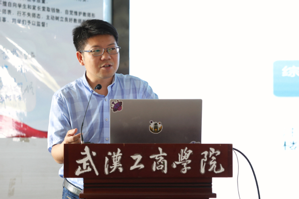 艺术与设计学院院长助理宋盈滨副教授作为优秀教师代表发言,他向全体参训的新进教职工传授了自己的三点教学经验:一是要关爱学生,关注学生成长与发展;二是尊重并激发学生的个性和创造力;三是要终身学习提升自我,积极向前辈请教,不断磨炼自己的专业能力和教学水平。