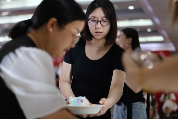 图为分发蛋糕,过集体生日 摄影:金天