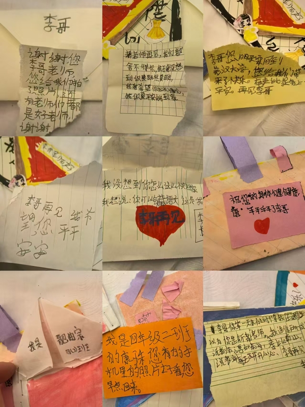 图为当地孩子在临别前送给志愿者们的祝福卡片 摄影:李若源