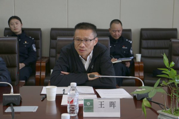 桂裕清副校长对调研组一行的到来表示热烈欢迎,对武汉市公安局、洪山分局、青菱街派出所长期以来给予学校的关心支持表示感谢。他简要介绍了学校基本情况和取得的成绩,并从学校安全保卫现状、校园安全管理、周边环境治理、校园交通管理问题及学生心理健康管理等方面作了汇报,同时就警校共建提升校园安全保障提出建议。