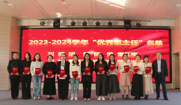 陈涛常务副部长宣读了《关于表彰2023-2024学年度“优秀班主任”的决定》。左宗文副校长为获表彰班主任颁奖,并向他们表示衷心的祝贺。