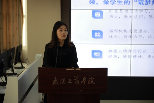 黄莉老师展示了自己的三点工作理念和方法:一是以“思”引领航向,筑牢思想引领,勇做学生的“筑梦师”;二是以“爱”融通情感,用情陪伴左右,愿做学生的“驻梦人”;三是以“行”筑梦成长,扎根创新育人,善做学生的“助梦者”。