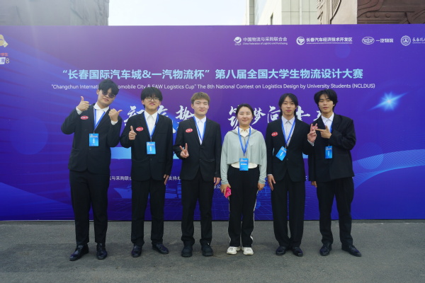 图为获全国大学生物流设计大赛三等奖的师生合影