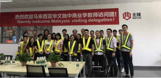 图为物流学院教师为马来西亚华文独中商业学教师访问团培训并组织参观菜鸟直营仓智慧物流仓库