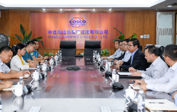 图为学校董事长彭秀春一行应邀赴上海中远海运集装箱运输有限公司考察交流校企合作应用型人才培养