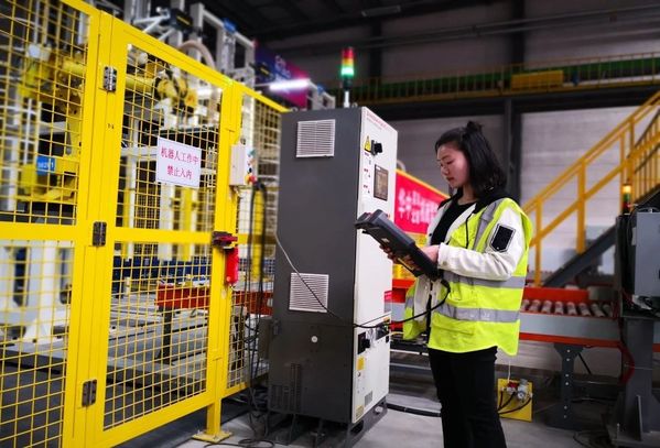 图为学生在深圳北领科技物流武汉黄陂智慧仓库实习