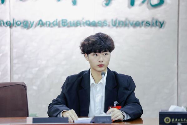 图为陈乐在全国高校商业精英挑战赛湖北省决赛现场