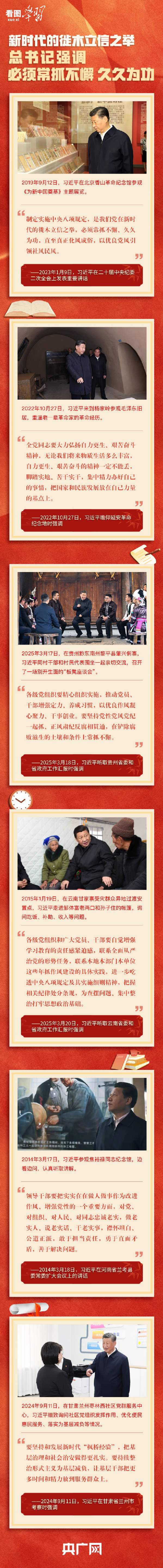 “制定实施中央八项规定,是我们党在新时代的徙木立信之举,必须常抓不懈、久久为功”。在全党开展深入贯彻中央八项规定精神学习教育是习近平总书记亲自点题、部署的一项重要工作,也是今年党建工作的一项重点任务。党的十八大以来,总书记对贯彻中央八项规定多次作出重要阐释,并始终坚持身体力行、以上率下,严格执行中央八项规定,带领全党不断将作风建设引向深入。一起来学习!